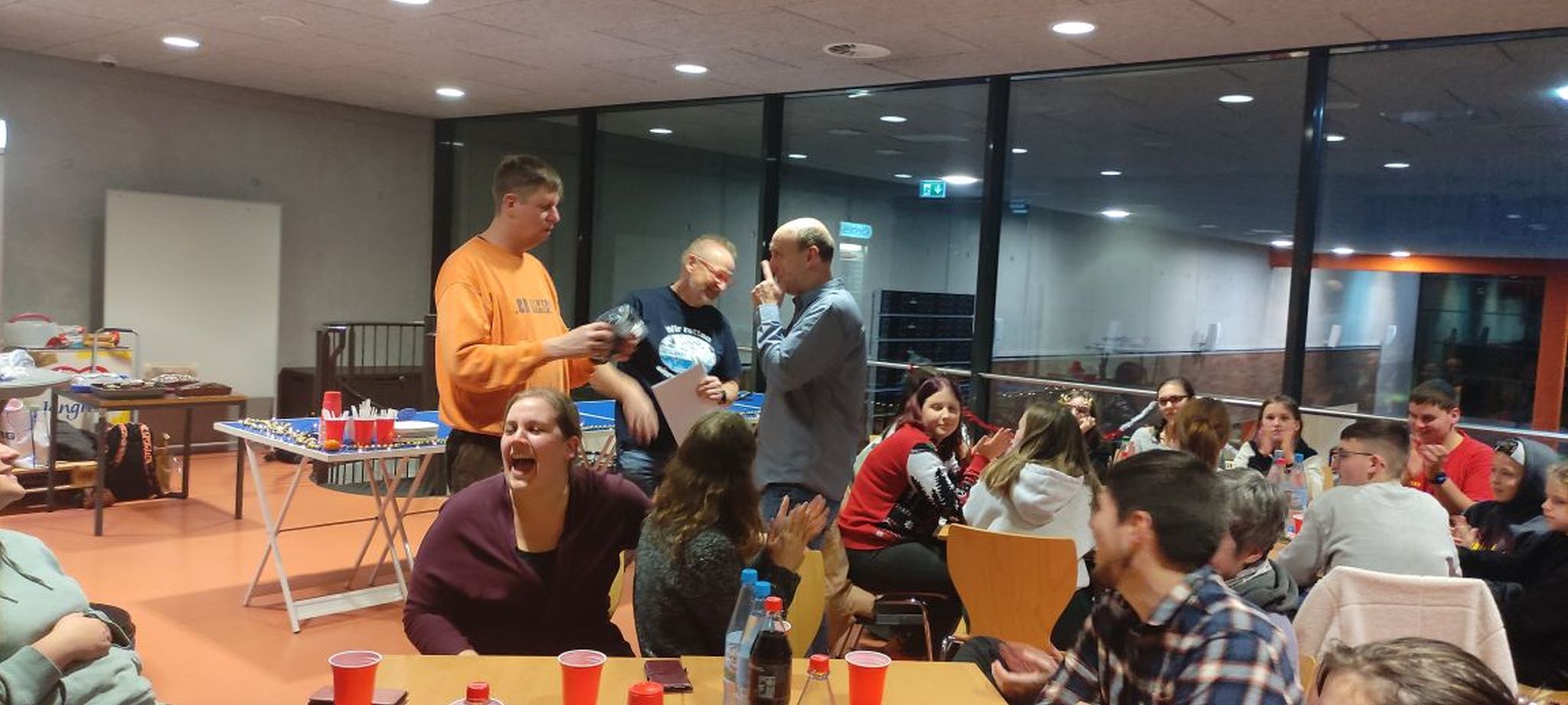 Die Übungsleiter, Ausbilder und Ausbildungshelfer im Hallenbad Oberhausen trafen sich nach der letzten Übungsstunde vor Weihnachten im Mehrzweckraum des Hallenbades Oberhausen, um wieder gemeinsam eine Weihnachtsfeier zu begehen. Die Badleitung bedankte sich bei allen Anwesenden für die geleistete Arbeit im Jahr 2023. Unser HBO Event Team hatte wieder einiges vorbereitet. Die Tische waren weihnachtlich gedeckt und es gab wieder Leckeres zum Essen und natürlich diverse Limonaden. Schon beim Essen freuten wir uns auf das angekündigte gemeinsame Escape-Spiel. Das Spiel wurde in Tischgruppen emsig und mit Spannung in mehreren Runden gespielt. Die Gewinnerteams erhielten diverse Preise aus dem DLRG Materialkatalog. Zeit für Gespräche war auch noch reichlich vorhanden. Schon jetzt freuen sich alle auf eine Wiederholung im nächsten Jahr.