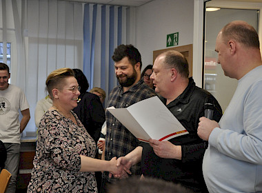 Mit der Entlastung des Vorstandes standen auch schon die Neuwahlen der Gruppe 2 auf dem Programm. Als stellvertretender Bezirksleiter wurde Oliver Kawalla im Amt bestätigt sowie für die Schatzmeisterei Heike Kösters für weitere 4 Jahre gewählt. Stefan Wesendonk steht ebenfalls als Justitiar für eine weitere Amtsperiode zur Verfügung und wurde entsprechend von der Versammlung bestätigt.