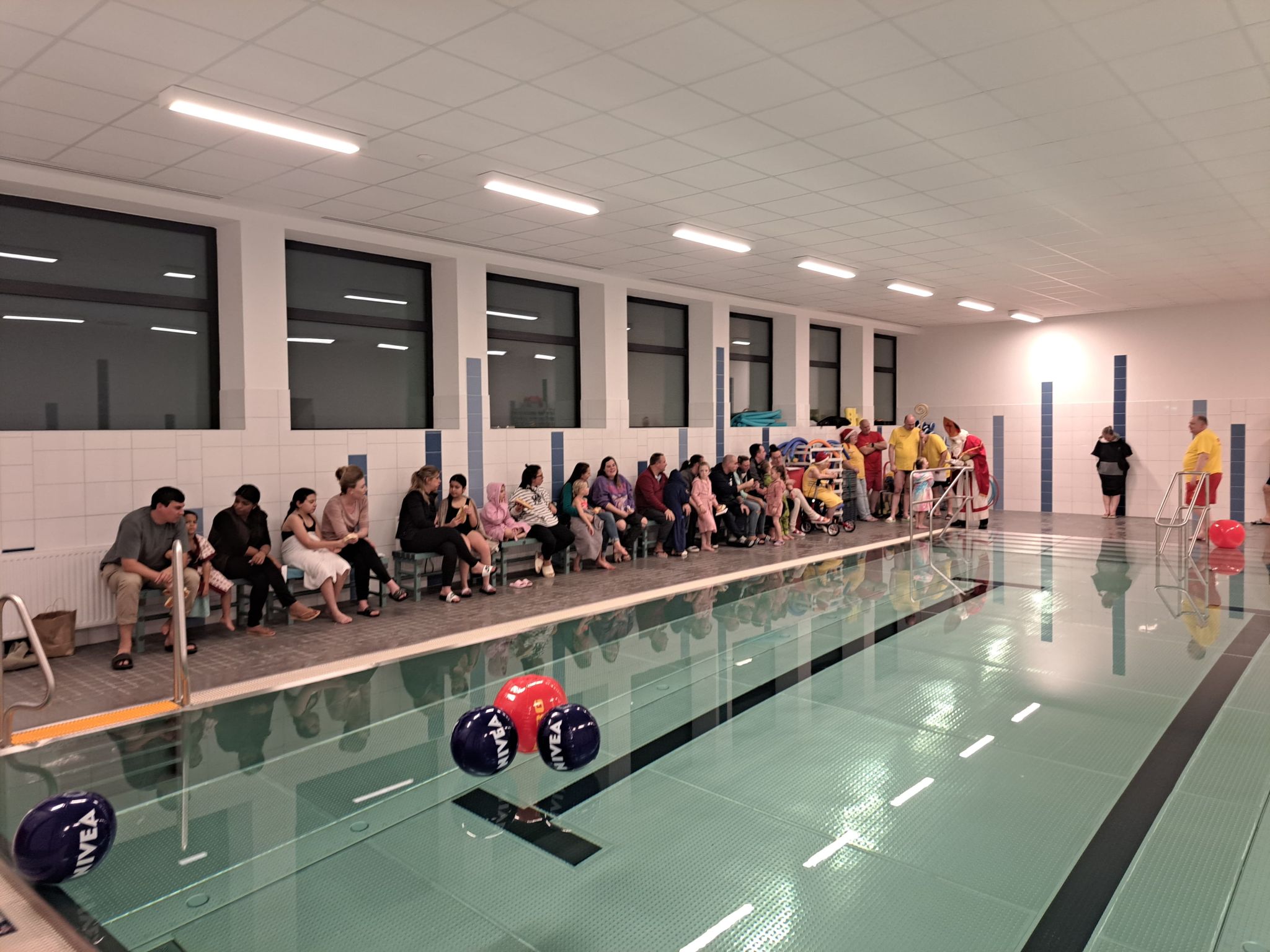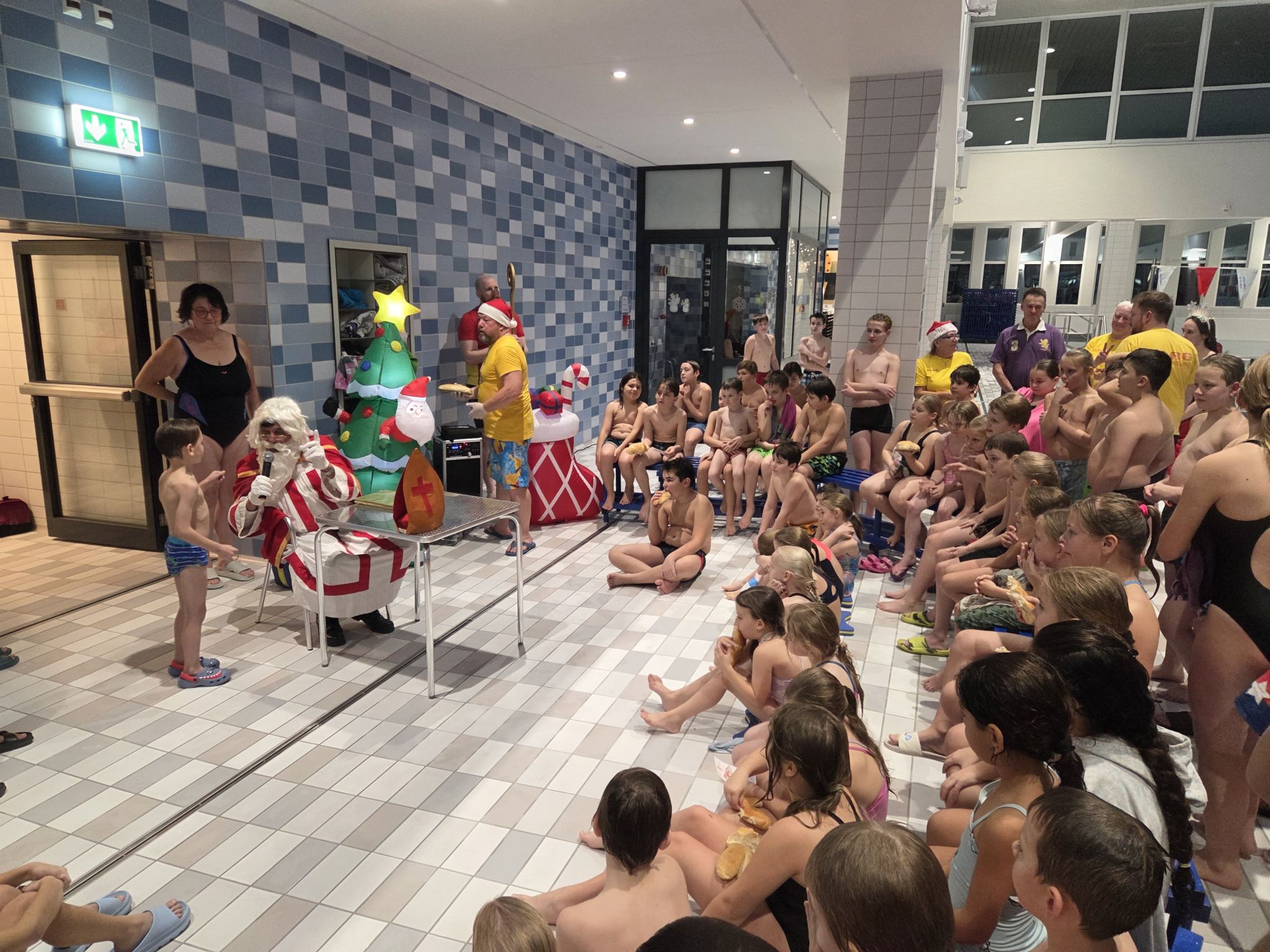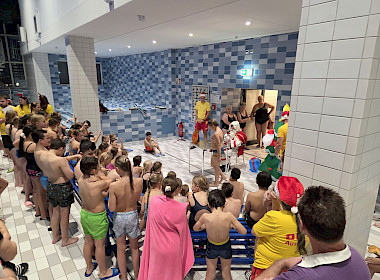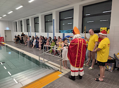 Begleitet von gesungenen Weihnachtsliedern der Aktiven, die fröhlich durch die Schwimmhallen klangen, entstand eine Atmosphäre, die festlicher kaum sein konnte. Als liebevolle Geste überreichte der Nikolaus jedem Kind einen Stutenkerl, der die Überraschung perfekt machte.