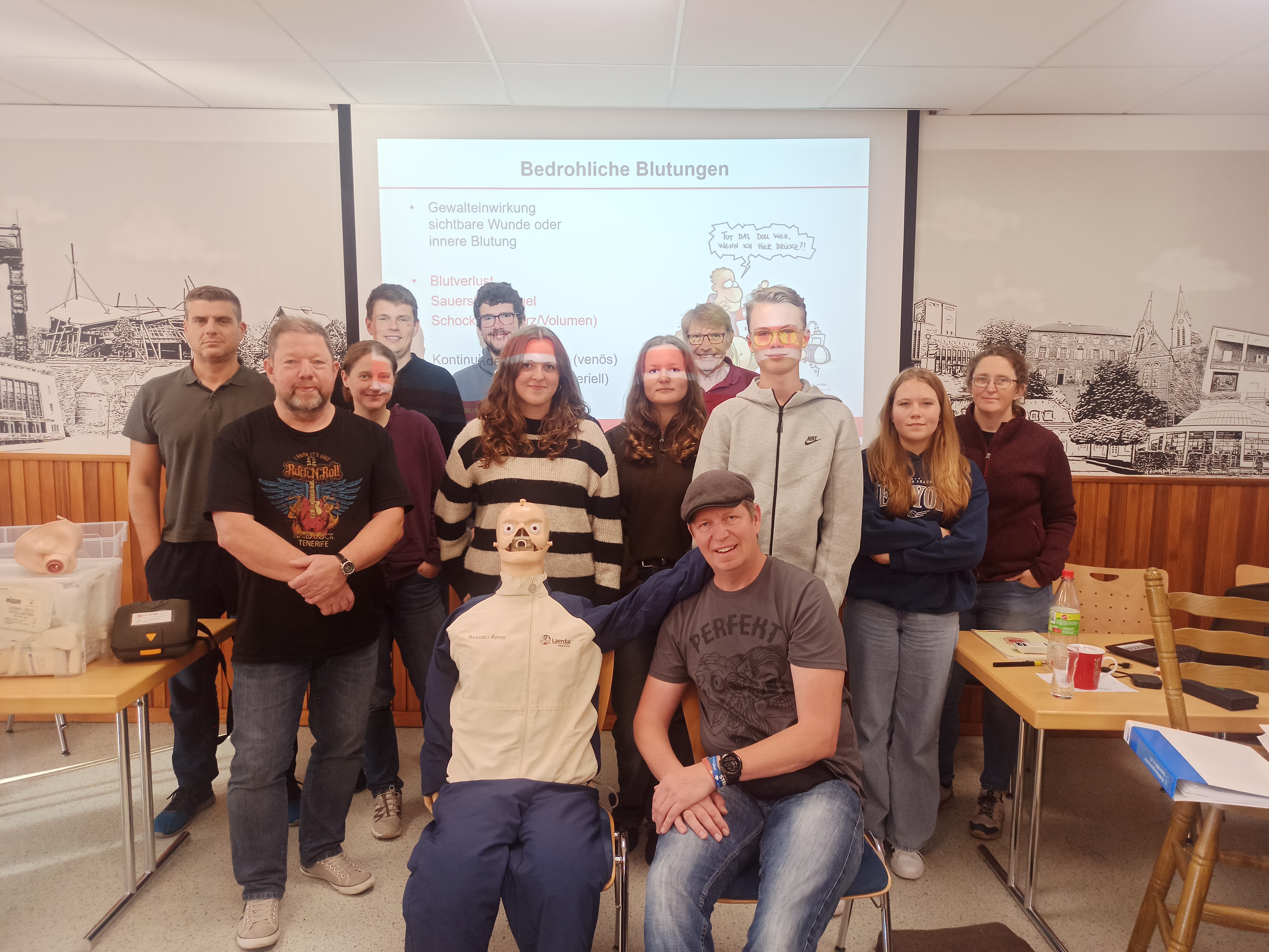 Am 26.10. veranstaltete die DLRG Oberhausen einen Erste-Hilfe-Kurs im Vereinsheim, um ihre Mitglieder in lebensrettenden Maßnahmen zu schulen. Der Kurs richtete sich an alle, die ihre Kenntnisse in Erster Hilfe auffrischen oder erweitern wollten – vom erfahrenen Rettungsschwimmer bis hin zu neuen Mitgliedern. Unter der Leitung erfahrener Ausbilder wurden praxisnahe Szenarien durchgespielt, bei denen die Teilnehmer ihr Wissen über Wiederbelebung, Wundversorgung, stabile Seitenlage und weitere grundlegende Erste-Hilfe-Maßnahmen vertiefen konnten. Besonders wichtig war es, die richtigen Reaktionen in Notfallsituationen zu trainieren und so das nötige Selbstvertrauen zu gewinnen, um im Ernstfall schnell und sicher handeln zu können.