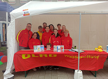 Viele Fragen gab es auch am Infostand zu beantworten. Hier gab es viele Fragen zu unseren Schwimmkurs Angeboten und der damit verbundenen Wartezeit auf diese. Ebenso groß war in diesem Jahr die Nachfrage zu unseren Rettungsschwimmkursen.