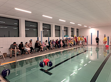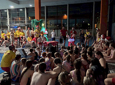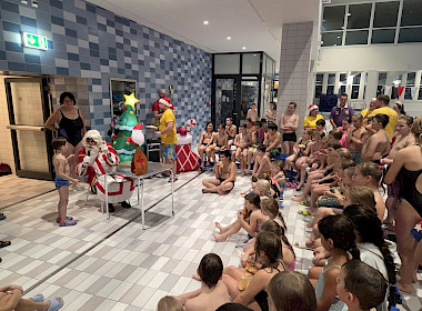 Begleitet von gesungenen Weihnachtsliedern der Aktiven, die fröhlich durch die Schwimmhallen klangen, entstand eine Atmosphäre, die festlicher kaum sein konnte. Als liebevolle Geste überreichte der Nikolaus jedem Kind einen Stutenkerl, der die Überraschung perfekt machte.