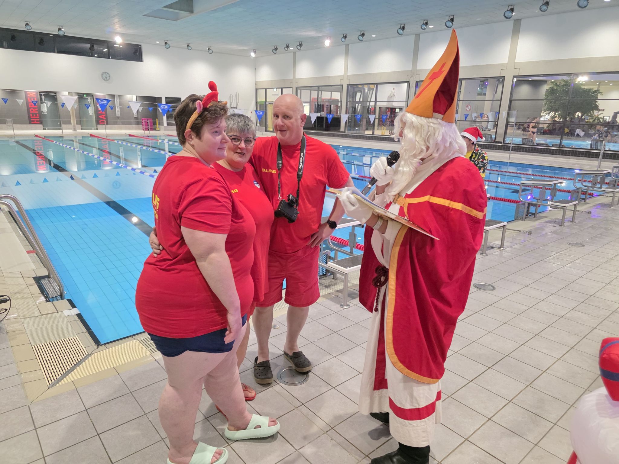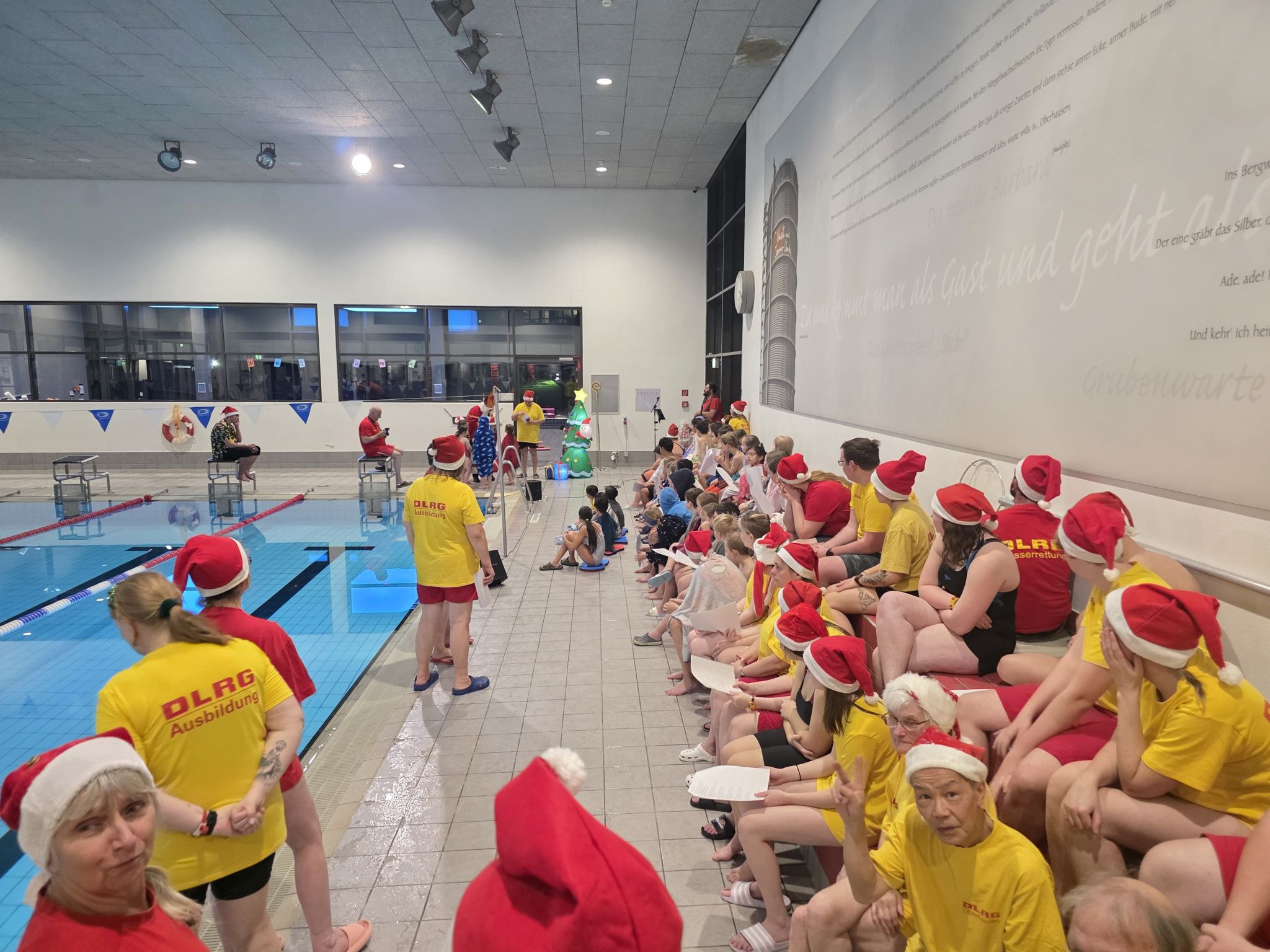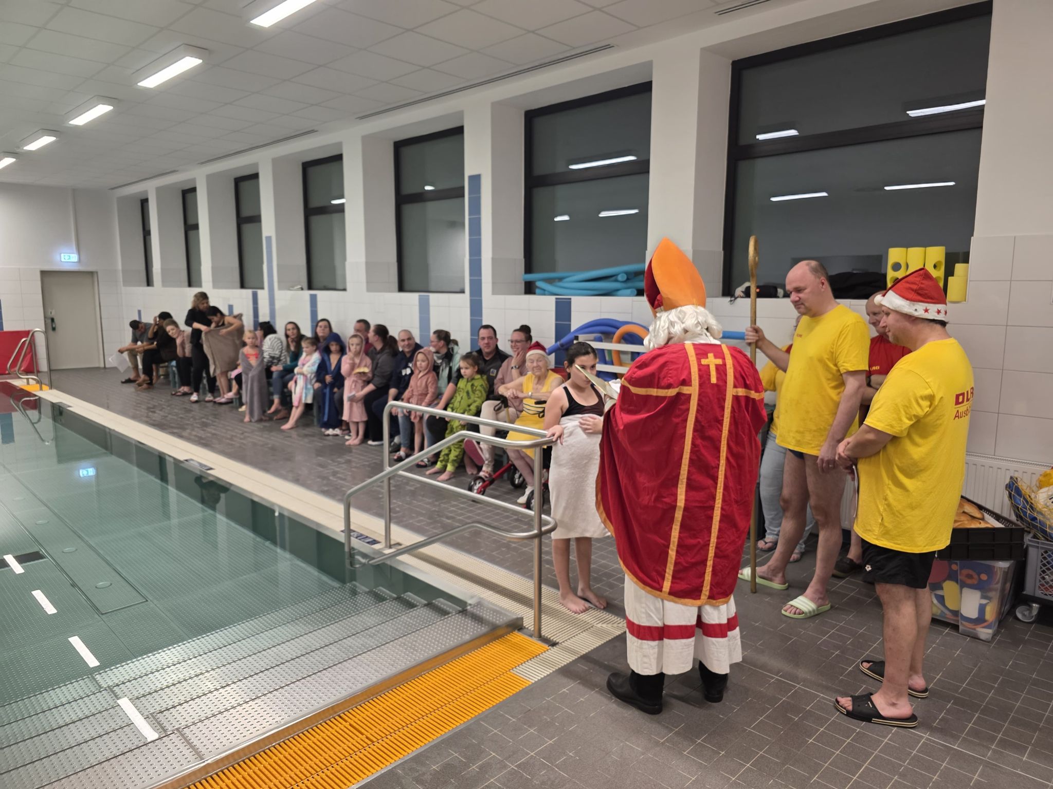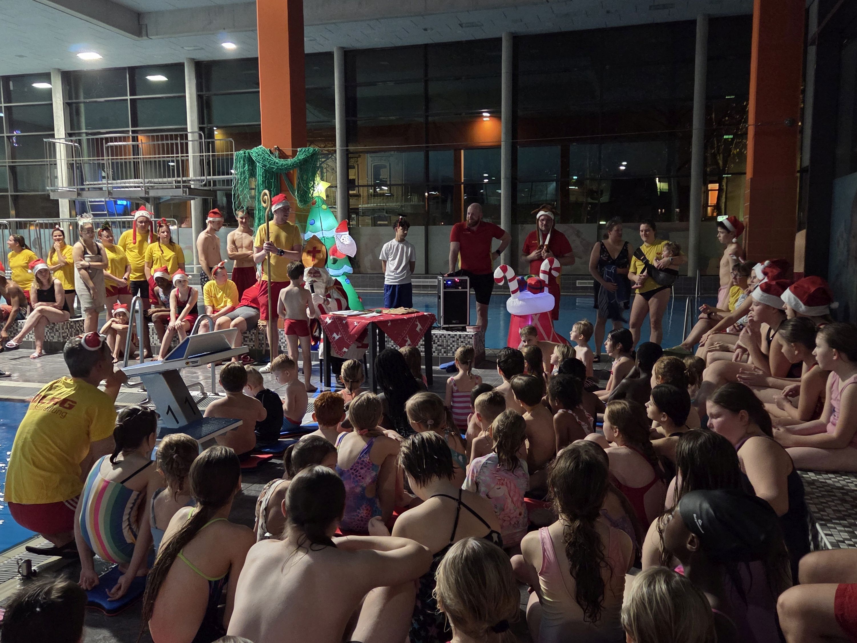 Begleitet von gesungenen Weihnachtsliedern der Aktiven, die fröhlich durch die Schwimmhallen klangen, entstand eine Atmosphäre, die festlicher kaum sein konnte. Als liebevolle Geste überreichte der Nikolaus jedem Kind einen Stutenkerl, der die Überraschung perfekt machte.