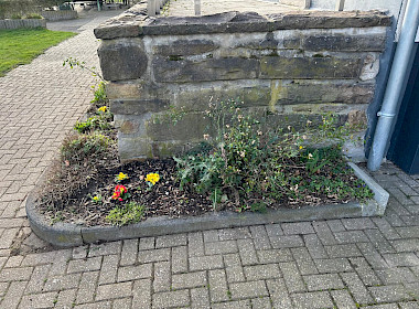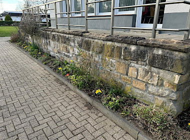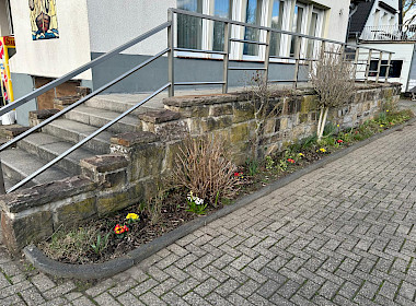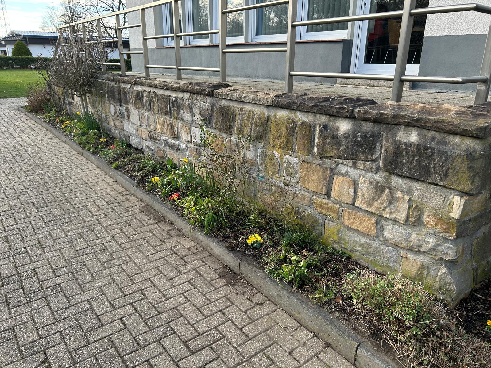Bevor es jedoch so weit war, wurde noch einmal kräftig angepackt. Unkraut musste gezupft, Sträucher und Pflanzen zurückgeschnitten sowie abgestorbene Pflanzenreste und Äste sorgfältig entfernt werden. Mit viel Einsatz und Liebe zum Detail wurde das Beet vorbereitet, sodass die Blumen anschließend ihren neuen Platz einnehmen konnten.
